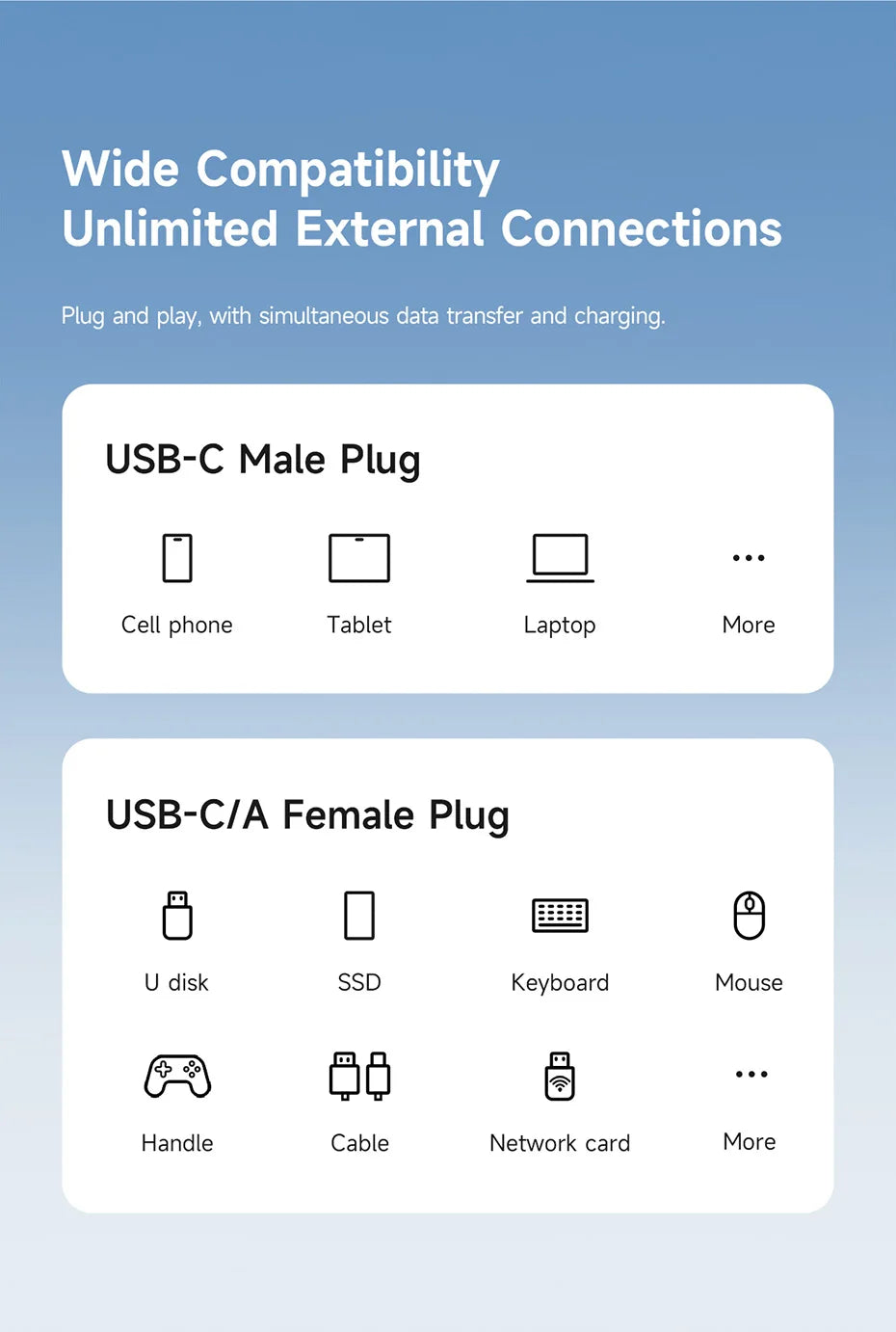 High Speed Data Transfer: Hagibis 2-in-1 USB C hub offers extra 10Gbps USB 3.2 port for connecting multiple USB peripheral devices such as flash drive, hard drive, keyboard, mouse, printer, MP3 player and more, providing data transmission speeds up to 10Gbps. Transfer music, movies, or entire seasons of TV shows in seconds with 10Gbps speed