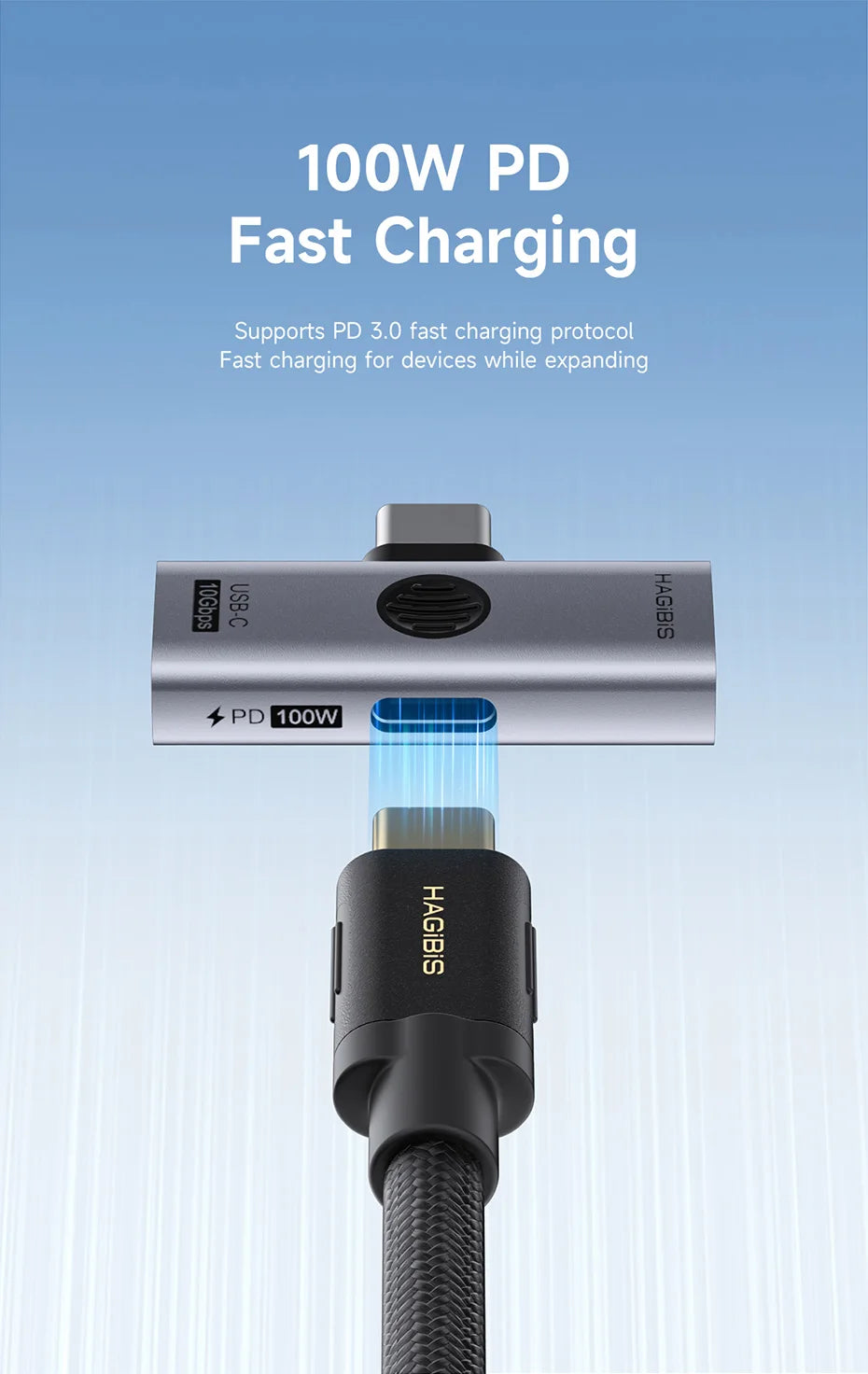 2-in-1 Design: Hagibis USB-C Splitter has 1 in 2 out function, 100Watts Power Delivery and 10Gbps USB 3.2 port, you can add a USB C headphone, flash drive, card reader, keyboard and mouse to your USB C host device, allow you to charge your device while listening to music, watching videos, making calls, playing games, or reading files