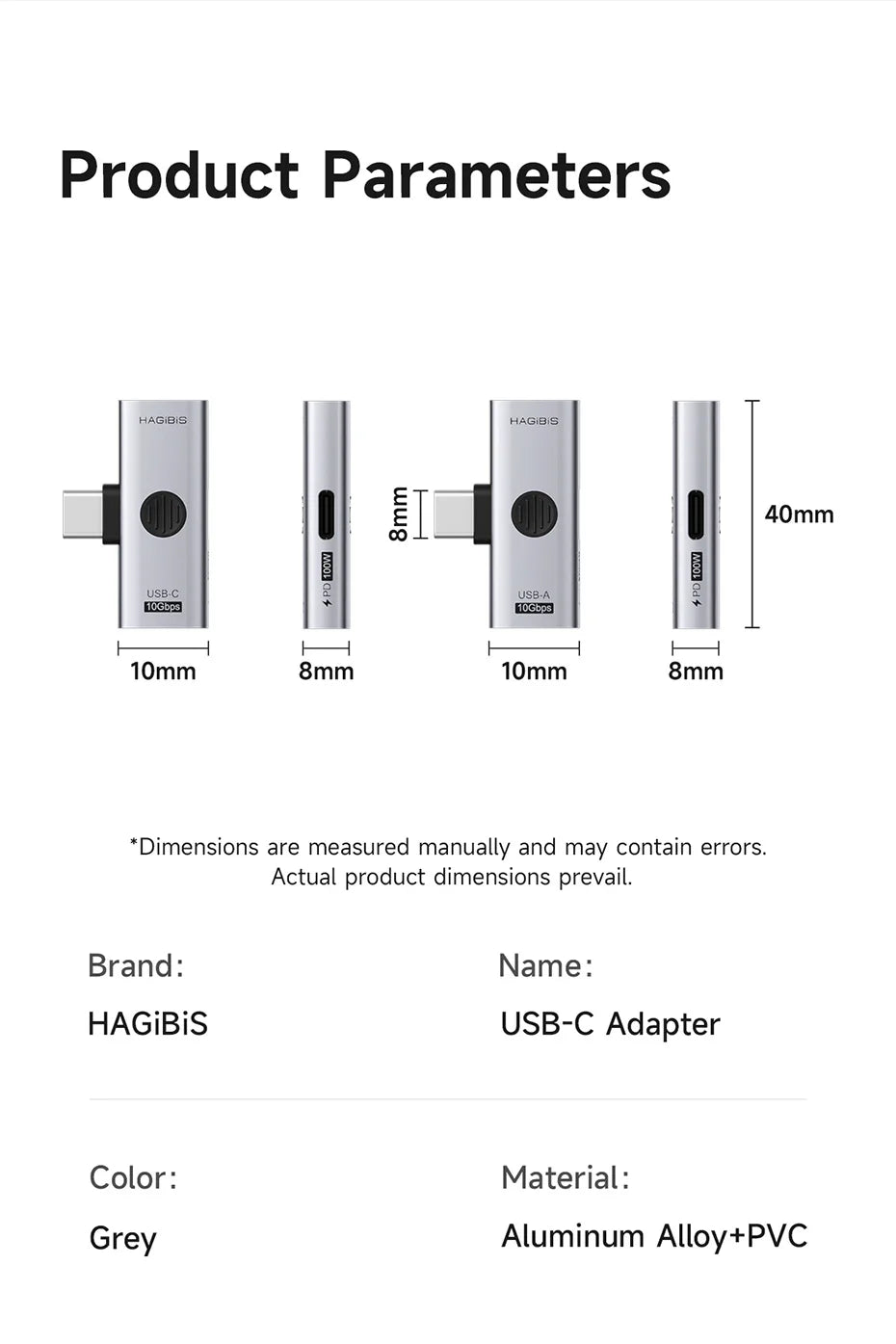 100W Power Delivery: Hagibis USB Type-C adapter provides one Type-C pass through a female port by which you could securely charge connected Type-C laptops.* Due to the energy consumption of the product itself, the power supply to the computer/mobile phone will be attenuated
