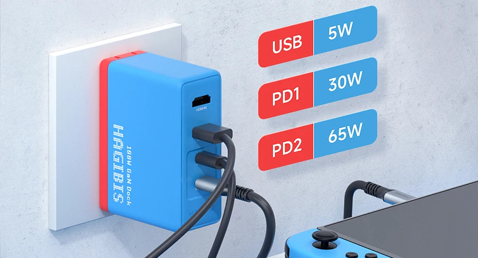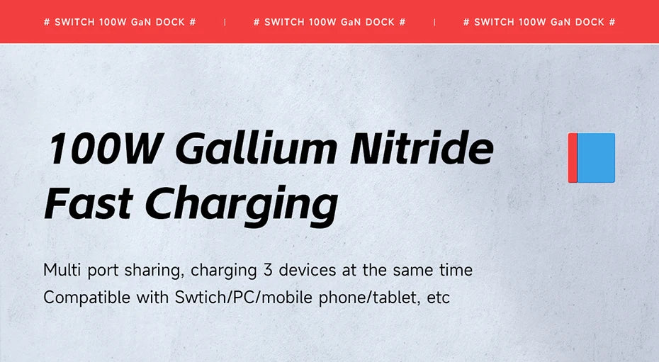 Multi-port sharing, charging 3 devices at the same time, Swtich/computer/mobile phone/tablet, etc. can be charged