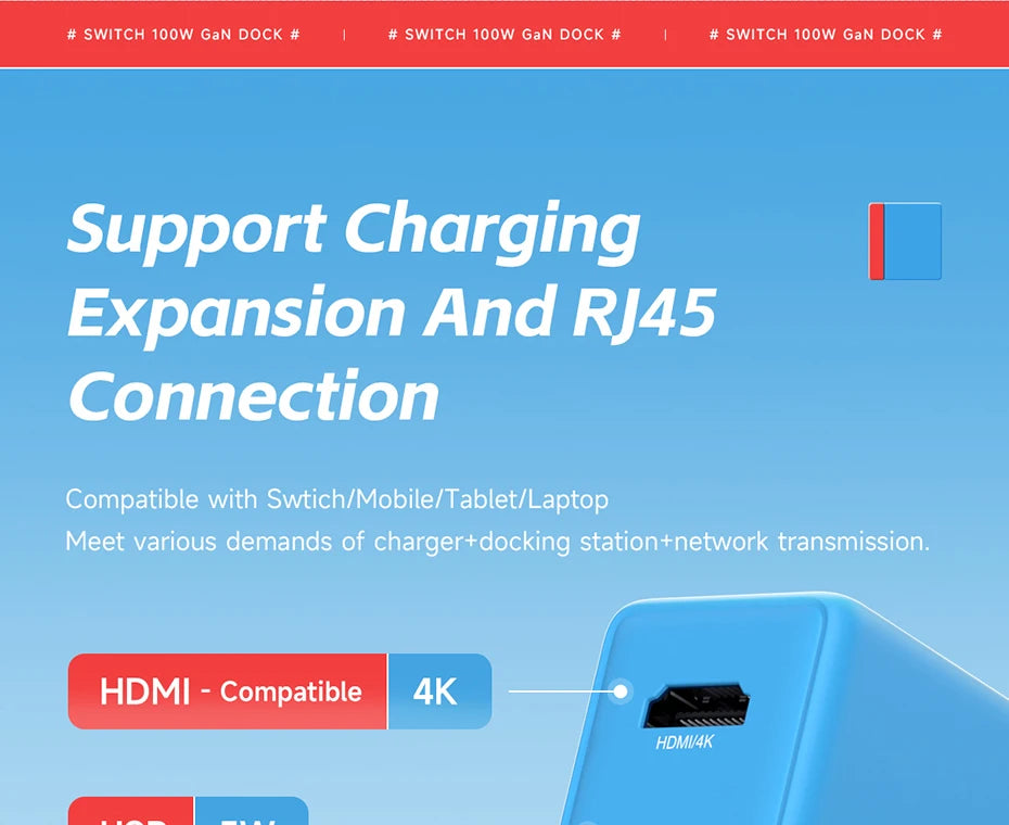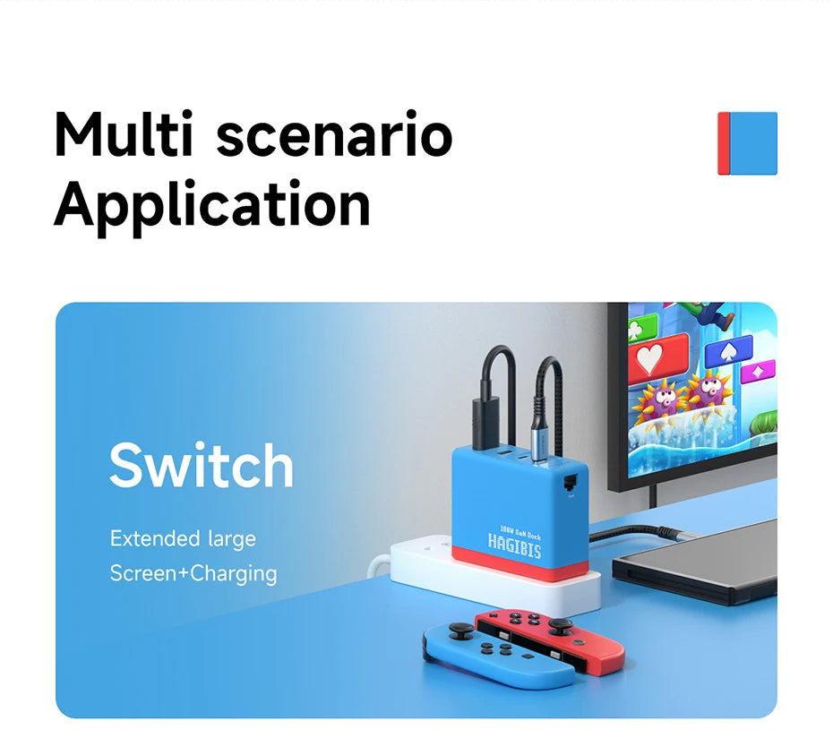 It is compatible with Swtich/mobile phone/tablet/notebook computer, and meets the requirements of charger+docking station+network transmission