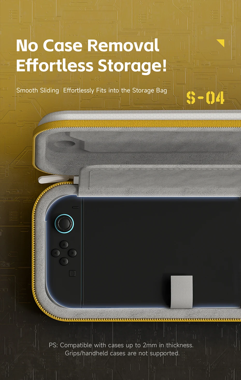 No Case Removal Effortless Storage:Smooth Sliding Effortlessly Fits into the Storage Bag(Compatible with cases up to 2mm in thickness. Grips/handheld cases are not supported.)