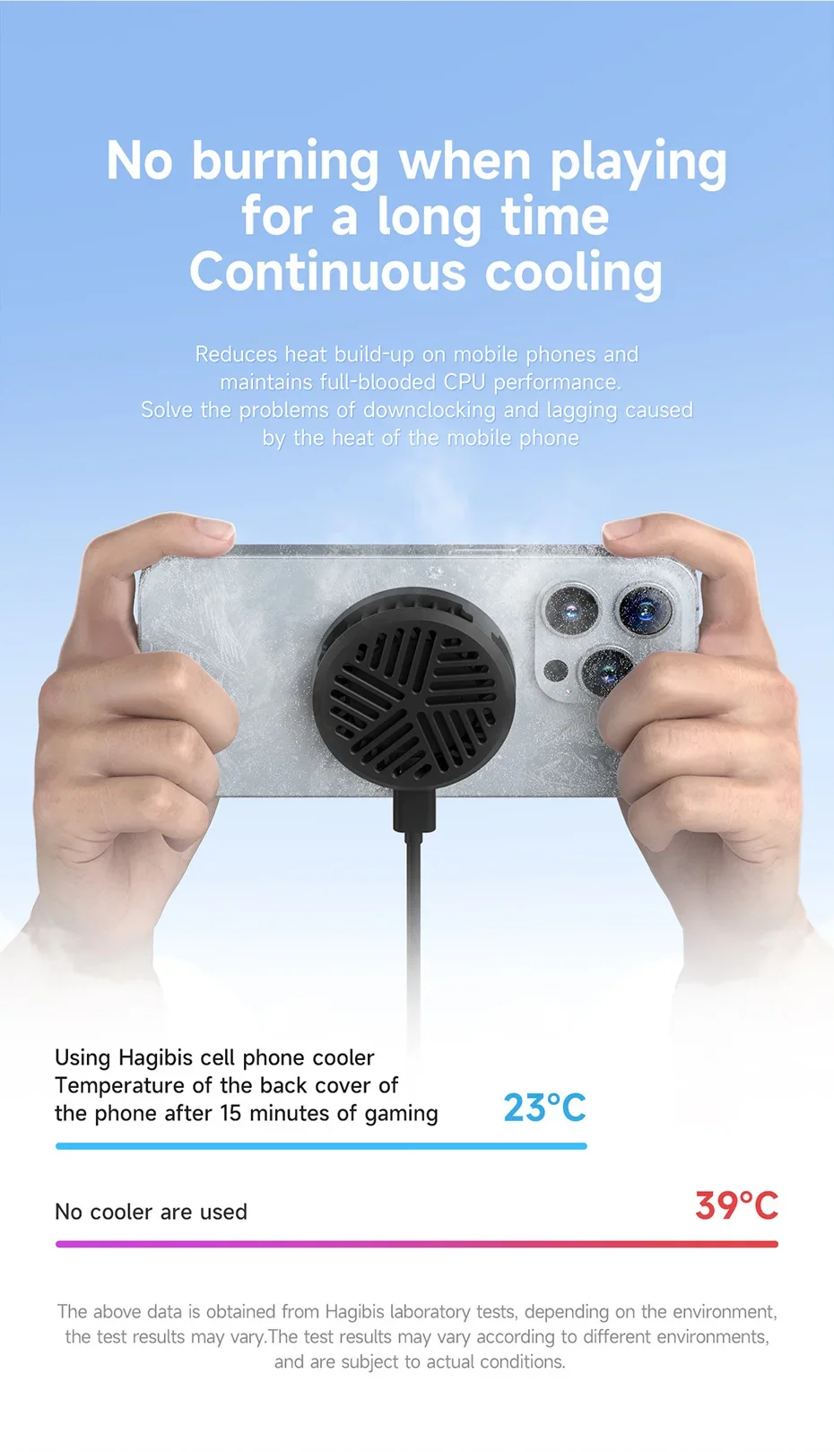Slim and compact: Does not block the lens.Weighs about 50g and fits snugly to the phone,As thin as 17mm, compact and fast cooling.