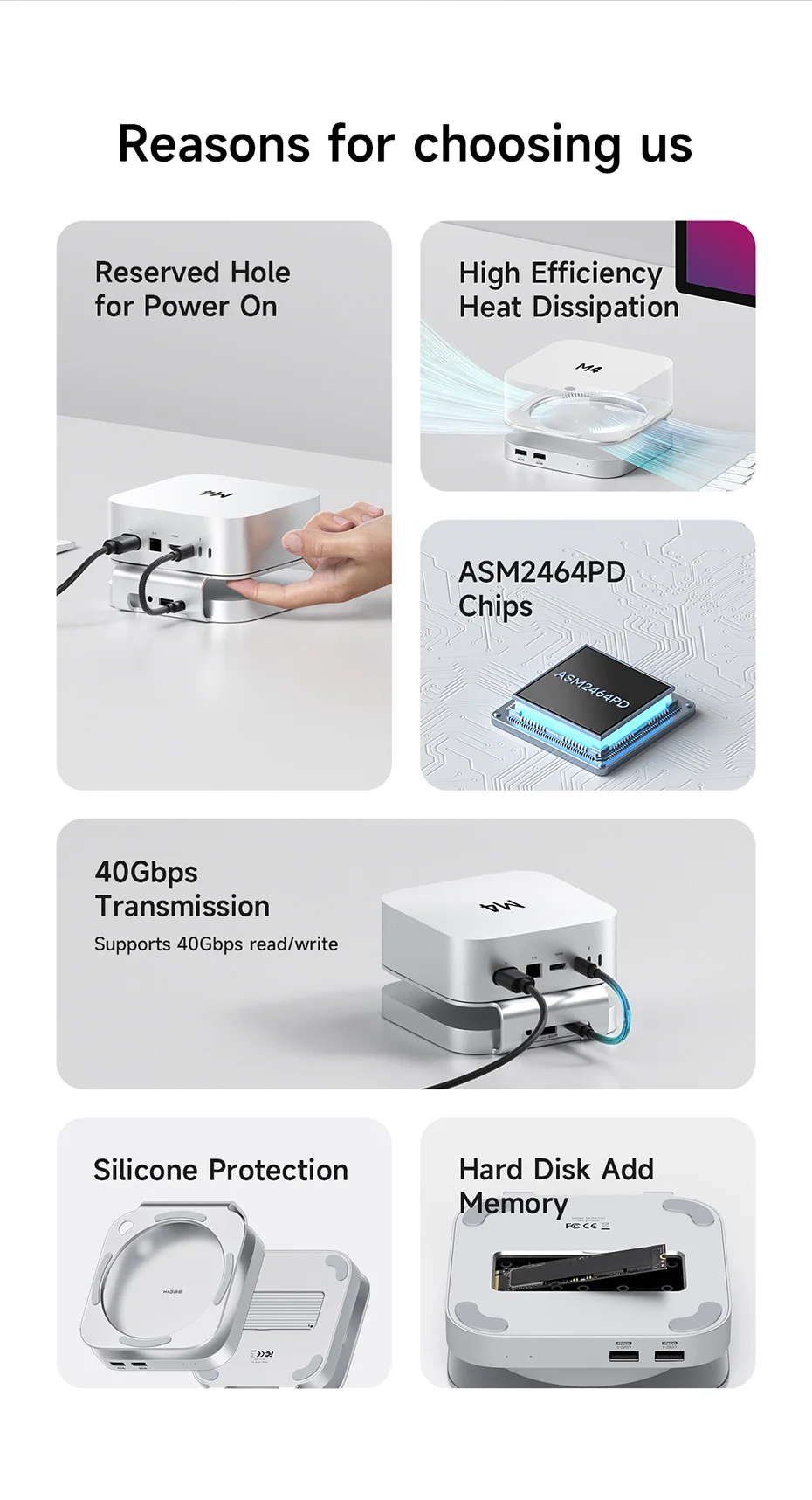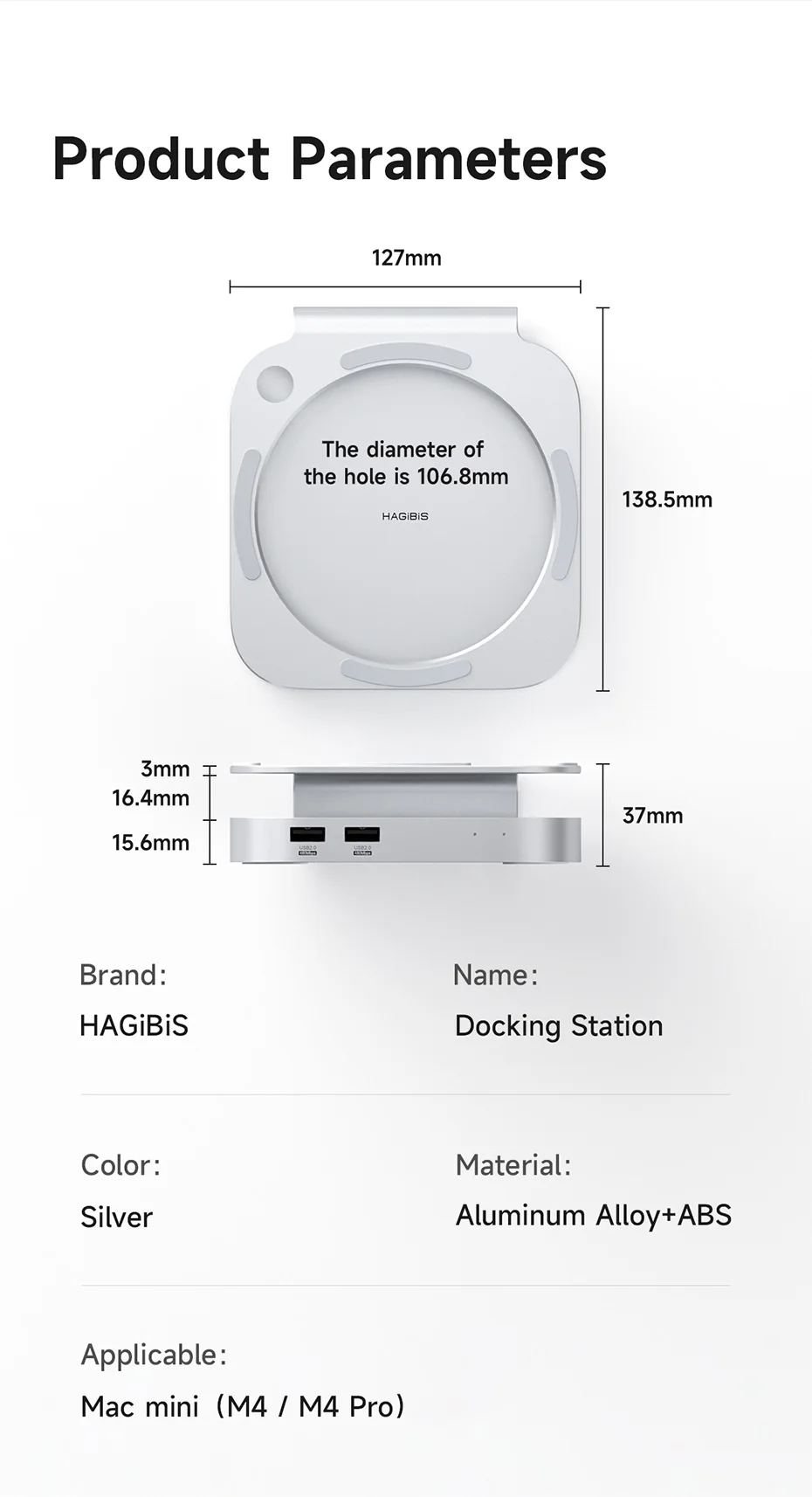 Good partner for Apple 2024 Mac Mini M4/M4 Pro: Hagibis Hub has multiple interfaces to meet multiple needs. Same size, alloy material, plug and play, light, solid, fast heat dissipation, more suitable for your 2024 Mac Mini M4/M4 Pro